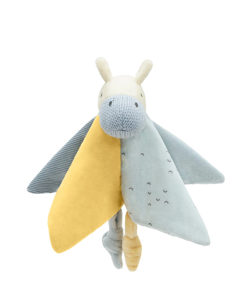 • Lille plys tæppe med sjovt blødt legetøjsfigur