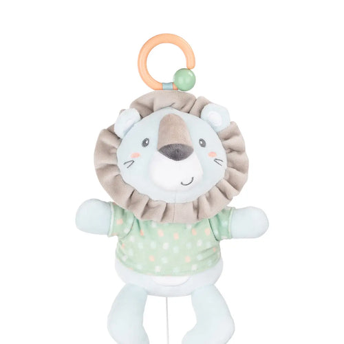 Denne spillebamse er lavet som en sød løve. Detaljer såsom dens øjne er blevet broderet, da det giver en bedre sikkerhed for baby.
