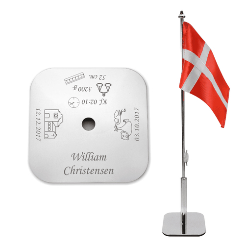 Dåbsflag med navn og data -firkantet