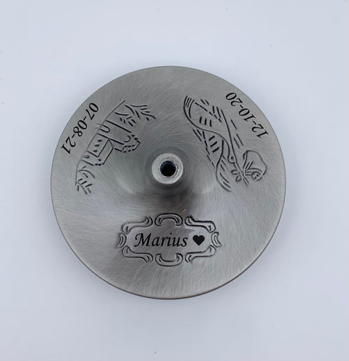 Flagstang med navn, dato og dåbsdato, fortinnet