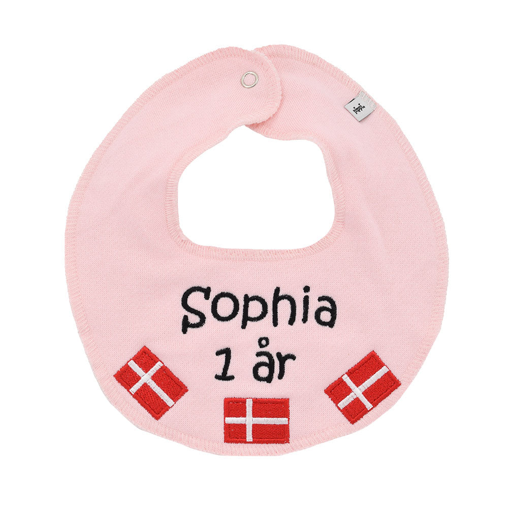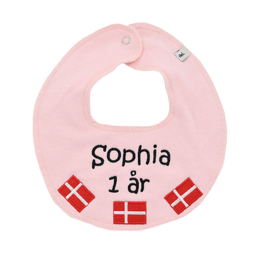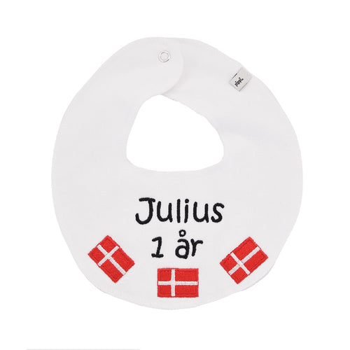 Savlesmæk med navn i rundt snit og med savletæt indlæg, specielt designet til babyer så dit barns tøj forbliver tørt under smækken. Savlesmækken lukkes med trykknapper i nakken og er lavet af blød bomuld yderst og inderst. Stort udvalg af lækre farver.