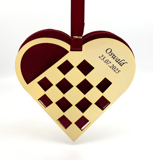 Du kan vælge at tilkøbe en smuk gravering på både forsiden og bagsiden af hjertet som vist på billedet. En meningsfuld og personlig gave til en du holder af.