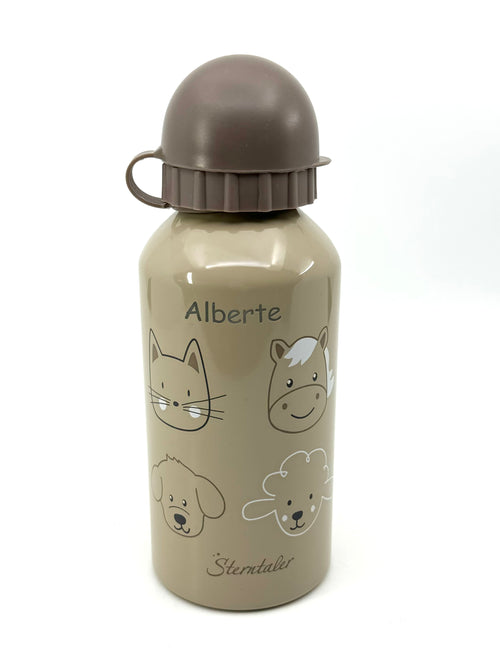 Fin farverig drikkedunk med en søde dyr på.