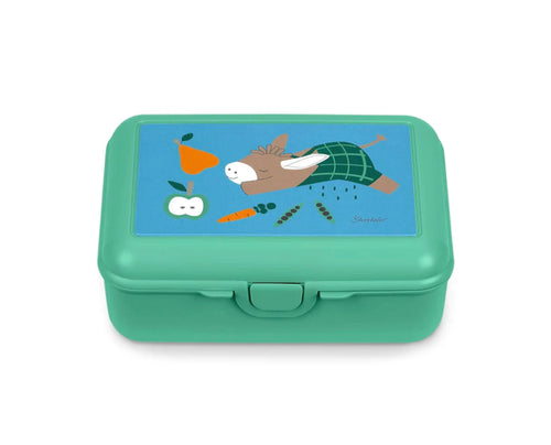 En praktisk madkasse inklusiv en rumdeler. Madkassen er lavet i et miljøvenligt plast materiale og har et fint print af en æsel på toppen.