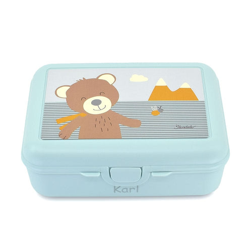 En praktisk madkasse inklusiv en rumdeler. Madkassen er lavet i et miljøvenligt plast materiale og har et fint print af en lama på toppen.