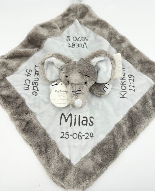 Super blød nusseklud fra My Teddy med Elefant design i fineste kvalitet som er dansk designet. En helt uundværlig ting hos rigtig mange børn og babyer, den kan trøste når mor og far ikke er der, eller når barnet skal sove.