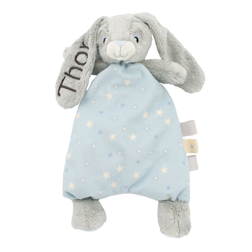 Denne nusseklud er lavet som en sød kanin i en flot lyseblå farve. Detaljer såsom dens øjne og mund er blevet broderet, da det giver en bedre sikkerhed for baby.