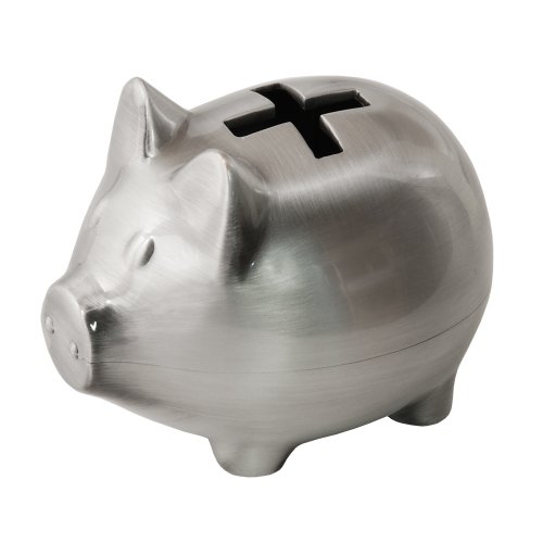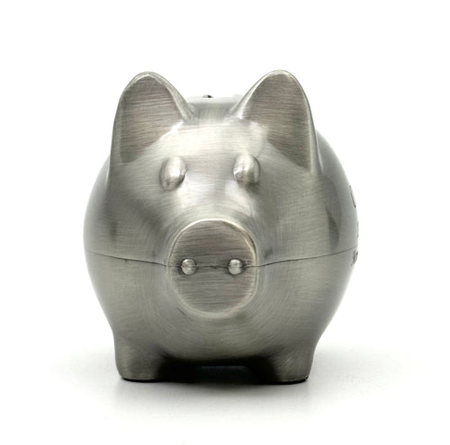 Flot sparebøsse lavet som en gris i fortinnet stål. Vil se rigtig fin ud som pynt på børneværelset.