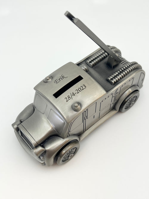Lær barnet at spare penge op med en sparebøsse. En helt unik sparebøsse med indgraveret navn og dato vil helt sikkert falde i god smag til barnedåben, babyshower, navngivningsfesten eller fødselsdagen.