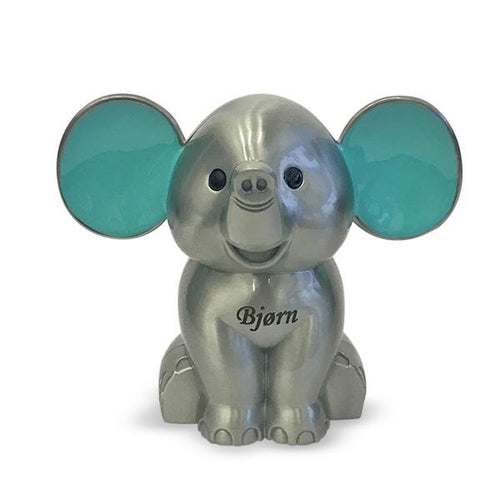 Sparebøsse - Elefant med blå øre - Fortinnet