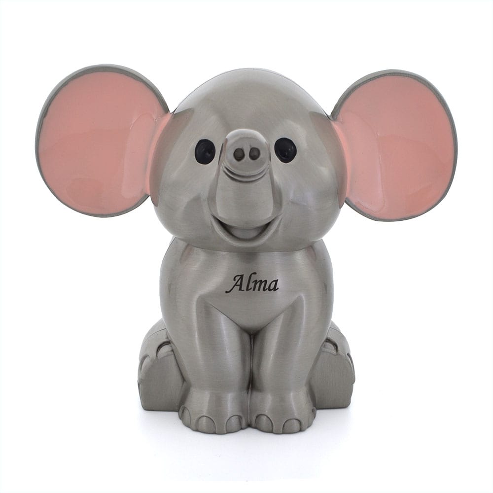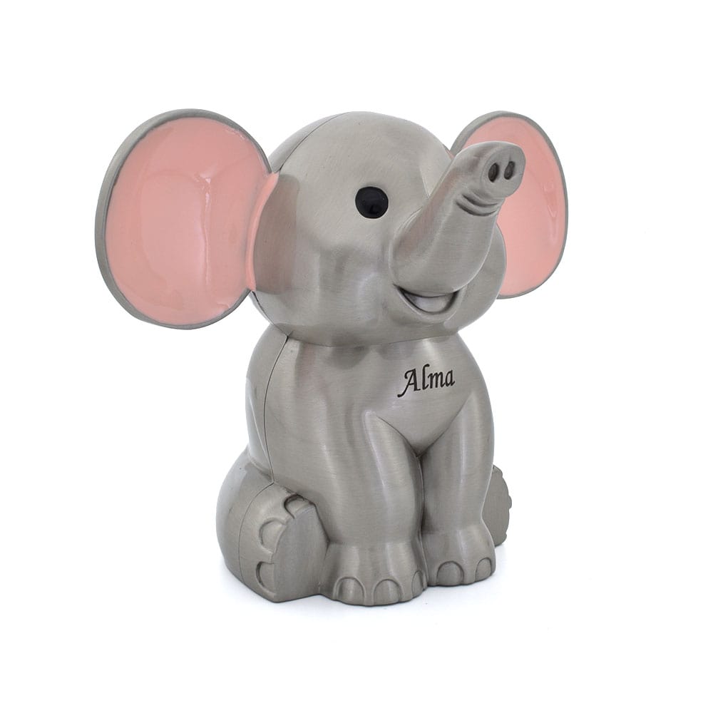 Sparebøsse - Elefant med lyserøde øre - Fortinnet