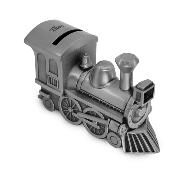 Flot sparebøsse lavet som et tog i fortinnet stål. Vil se rigtig fin ud som pynt på børneværelset.