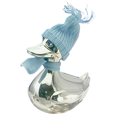 Sparebøsse - And med lyseblåt halstørklæde - Forsølvet