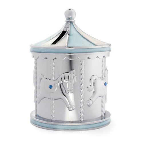 Sparebøsse - blå karusel - Forkromet