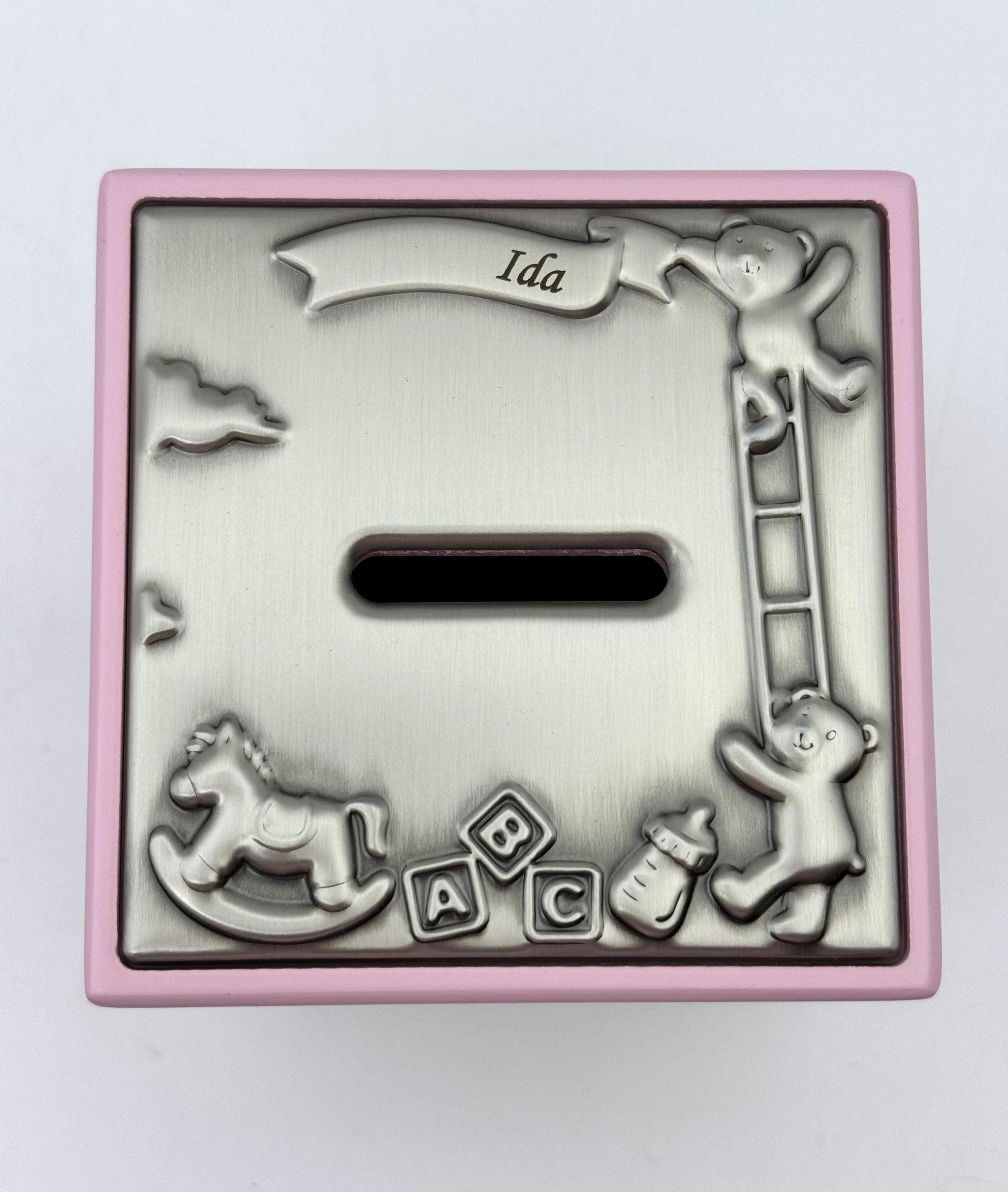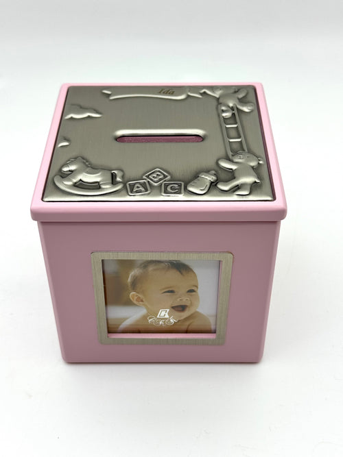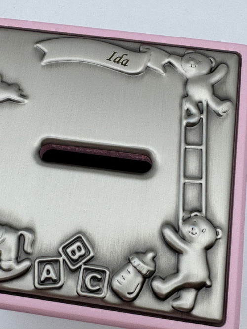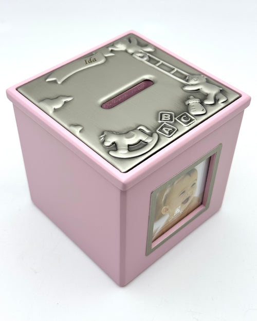 Sparebøsse - Lyserød trækasse Fortinnet