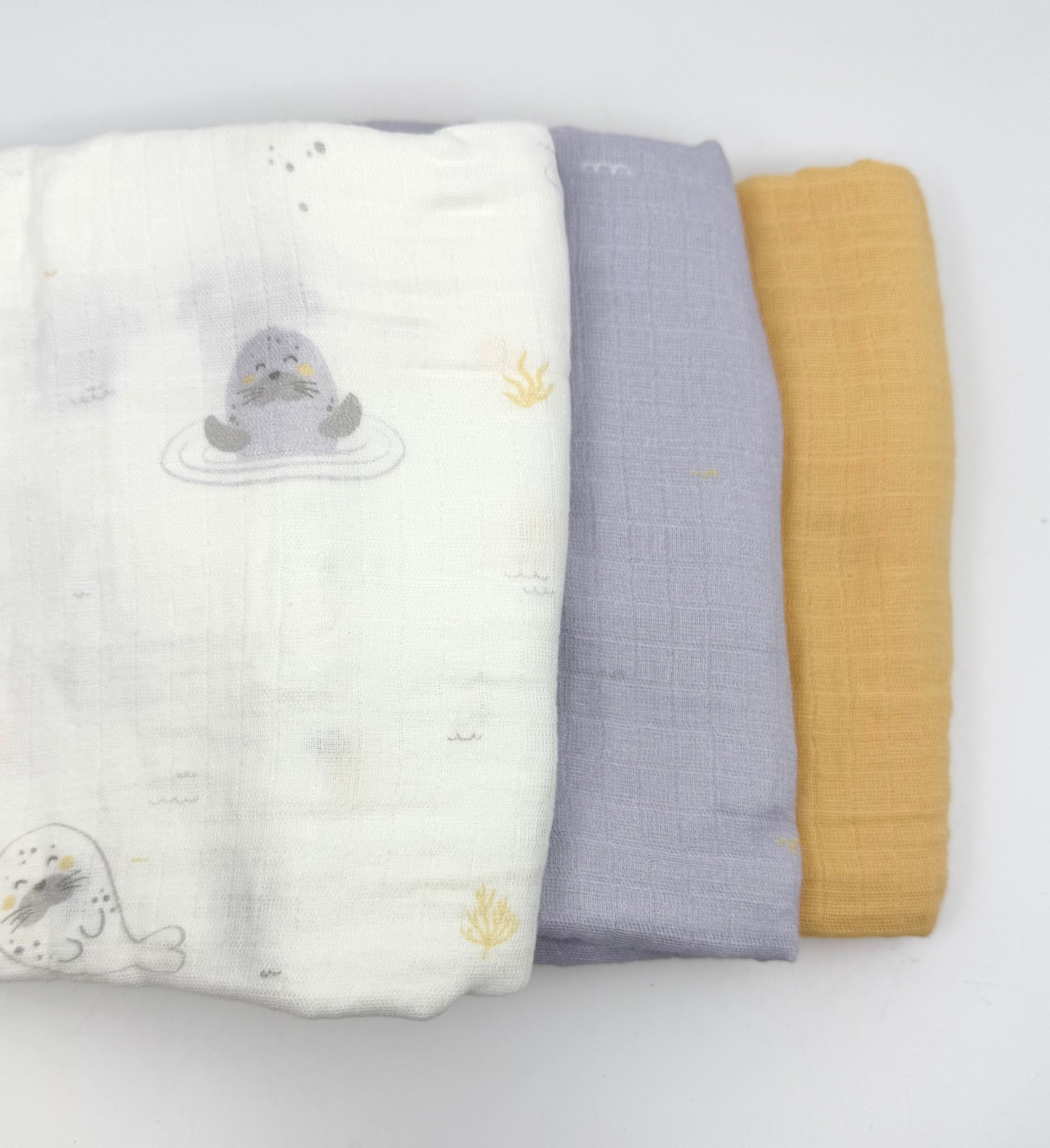 Sæt med 3 stykker bløde og skånsomme musselinsvøb.